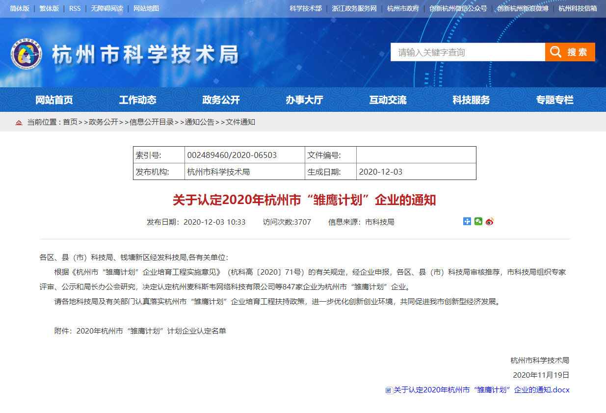 近日,杭州市科学技术局发布了《关于认定2020年杭州市“雏鹰计划”企业的通知》,拾光艺创公司经历长达半年时间的申请准备,于11月正式通过杭州市2020年“雏鹰”企业评选认定,成为上榜企业中为数不多的文创企业,并获得专项资金奖励以及贷款贴息的政策扶持。