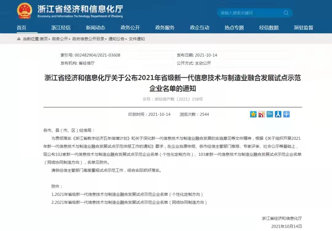 日前,浙江省经济和信息化厅公布了103家新一代信息技术与制造业融合发展试点示范企业名单(网络协同制造方向),开云网页版下属申达公司成功入选。