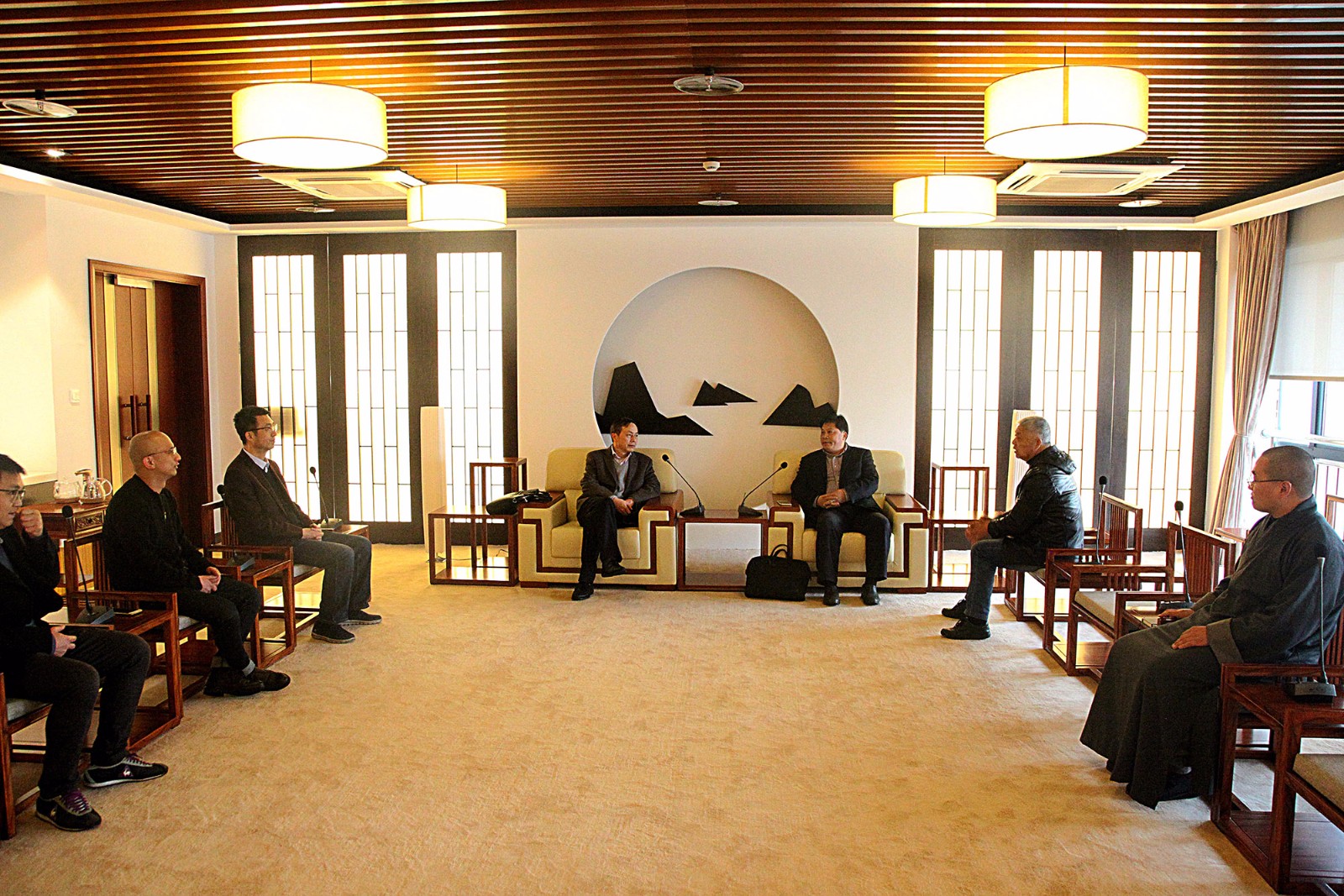 3月26日,集团公司党委书记、总经理虞岳明一行赴奉化会晤区委常委、统战部长方国波,双方就集团公司与浙江佛学院在艺术领域的相关合作进行了商讨,并在合作办学、工艺品展示、艺术创作等方面达成共识。
