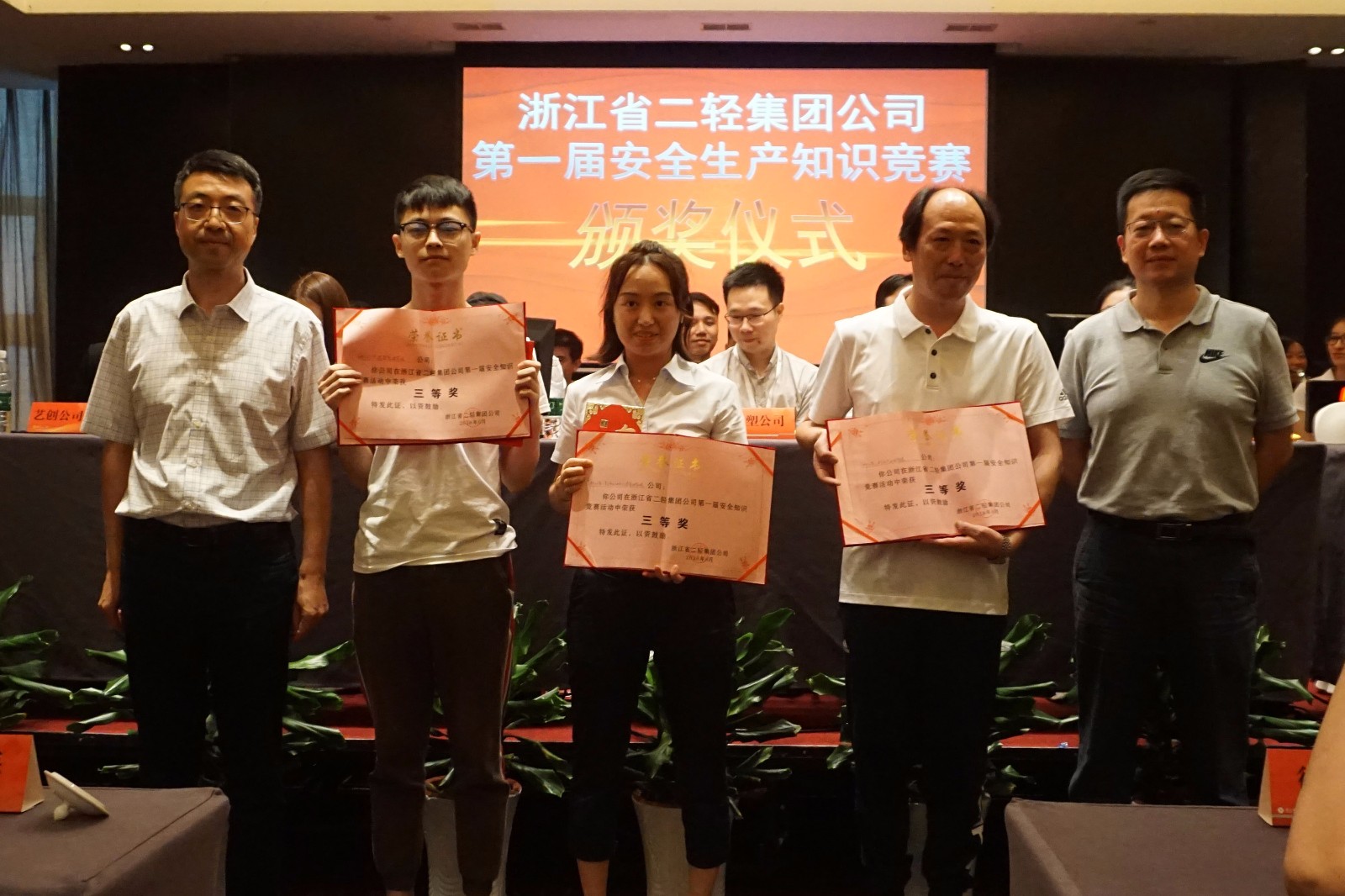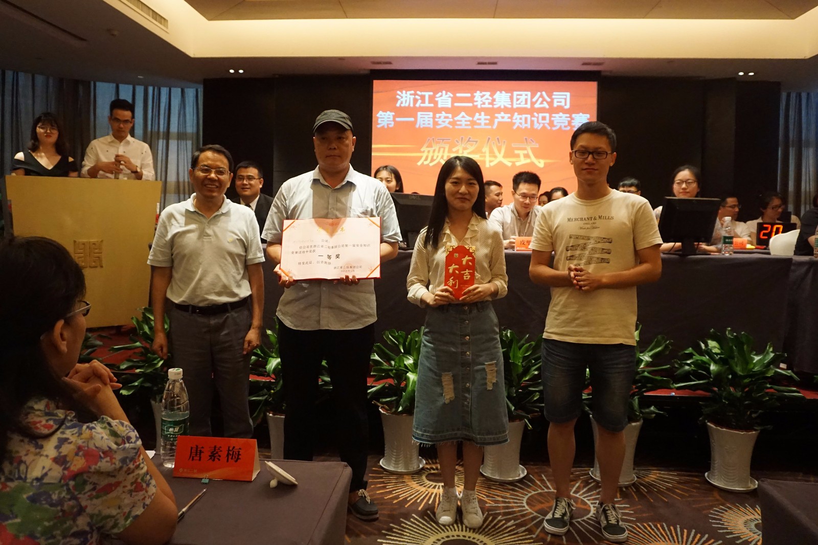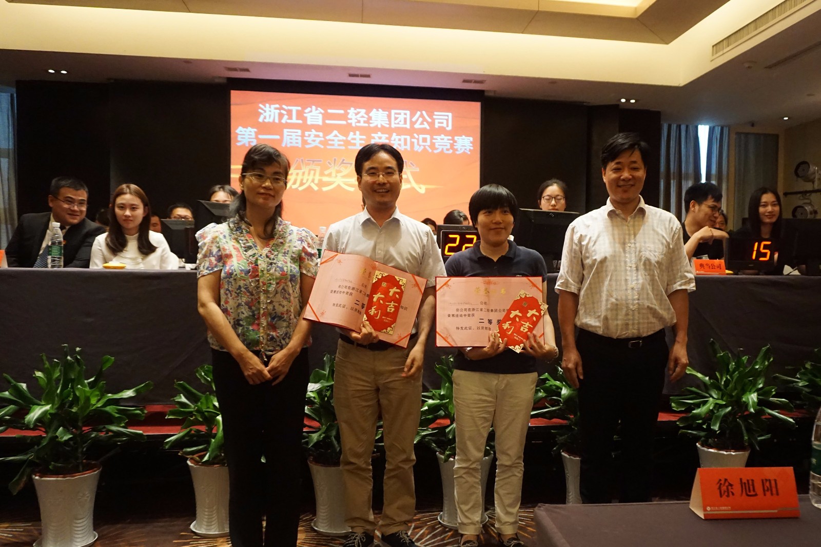 为认真贯彻落实省委省政府、省国资委关于开展“安全生产月”活动的相关文件精神及要求,进一步推进集团公司安全工作开展,强化安全意识,巩固安全文化建设,6月28日下午,集团公司第一届主题为“安全二轻”的安全知识竞赛在浙江饭店举办。省国资委政策法规处处长唐素梅、副处长厉振松及集团公司副总经理、分管安全工作领导徐旭阳致开幕词,集团公司副总经理吴敏、党委副书记张城及各部室企业主要负责人、安全工作相关负责人、员工等50余人莅临现场观摩。